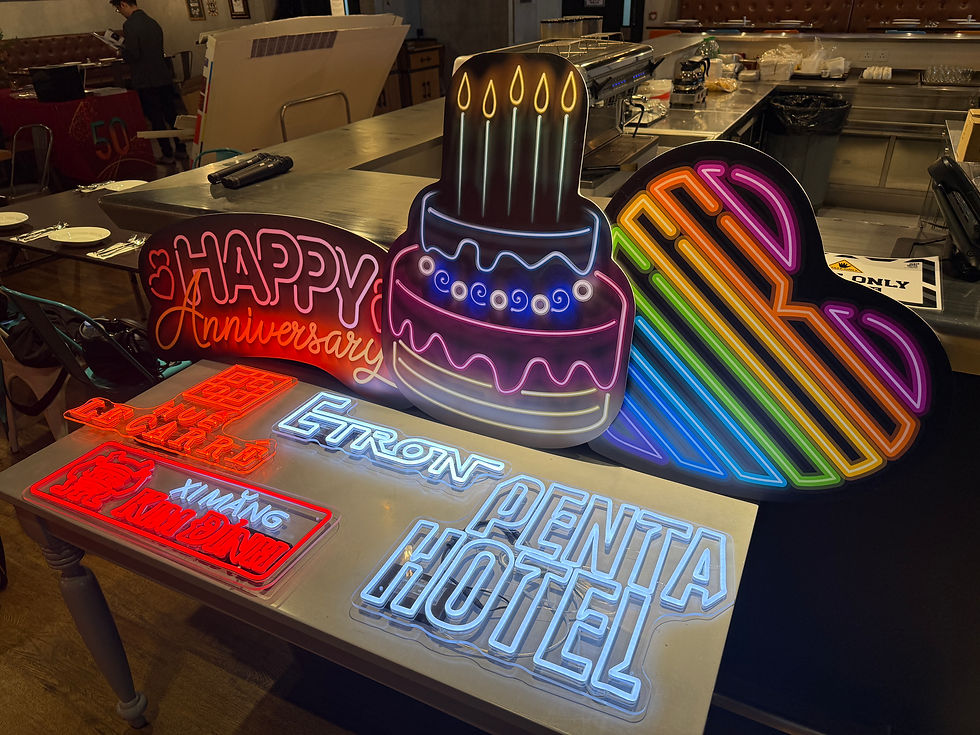 Amazing Studio 為陸氏集團 50 周年晚會提供場地佈置方案,圍繞周年主題製作背景板、及多款現場展示物料,提升整體活動氣氛與紀念意義。主背景板特別加入集團越南總部大樓元素,配合霓虹燈字體點綴,呼應企業歷史與品牌故事;同場亦製作手持燈牌、Foamboard POPs、接待處簽名板及氣球裝飾,令現場佈置更完整豐富。項目由設計、製作到活動當日安裝一手跟進,讓活動場景更具主題感與打卡效果。